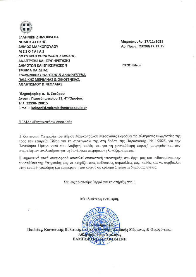 Συμμετείχαμε ενεργά στη δράση που πραγματοποιήθηκε την Παρασκευή 14 Νοεμβρίου 2025 από την Κοινωνική Υπηρεσία του Δήμου Μαρκοπούλου Μεσογαίας,