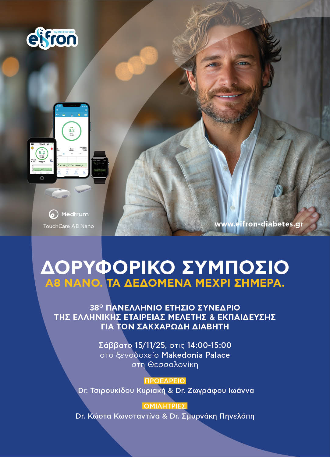 Κατά τη διάρκεια του συμποσίου θα παρουσιαστούν τα νεότερα κλινικά δεδομένα και οι εμπειρίες από τη χρήση του Medtrum TouchCare A8 Nano, ενός ολοκληρωμένου συστήματος συνεχούς παρακολούθησης και διαχείρισης του Σακχαρώδη Διαβήτη.