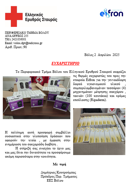 Ευχαριστούμε τον Ελληνικό Ερυθρό Σταυρό Βόλου για το σημαντικό του έργο και ανανεώνουμε τη δέσμευσή μας να συνεχίσουμε να προσφέρουμε όπου υπάρχει ανάγκη.